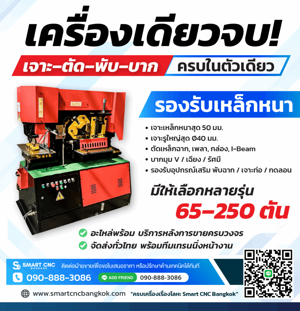 ผู้เชี่ยวชาญเครื่องจักรโลหะแผ่น พร้อมบริการครบวงจร ครบทุกความต้องการเรื่อง ม้วน พับ เชื่อม เจาะโลหะ ให้คำปรึกษาโดยทีมงานมืออาชีพ SMART CNC Bangkok เราคัดสรรเครื่องจักรสำหรับงานโลหะแผ่นที่เหมาะกับทุกธุรกิจ ไม่ว่าจะเป็นโรงงานขนาดเล็ก กลาง หรือผู้รับเหมารายย่อย พร้อมอะไหล่และการซ่อมบำรุงครบวงจร บริการให้คำปรึกษาฟรี SMART CNC Bangkok นำเข้าเครื่องจักรแบรนด์ชั้นนำ มาตรฐานสากล Gweike Series LA Gweike Series SL Gweike Series LNR Gweike Series LN Gweike Series P Gweike Series E Gweike Series HG Gweike GKS-BC0315 Gweike Series 1390 Gweike Series GAR GWEIKE CNC 5 Axis Fiber Laser Cutting Machine 3D Gweike Series LCW Gweike GKS-60162 Gweike GKS-9036T3L ZYMT ZYC Series